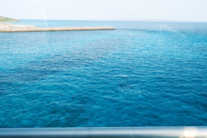 2日目は来間大橋を渡ったあと、地下ダム資料館を見学、その後東平安名崎をウオーク