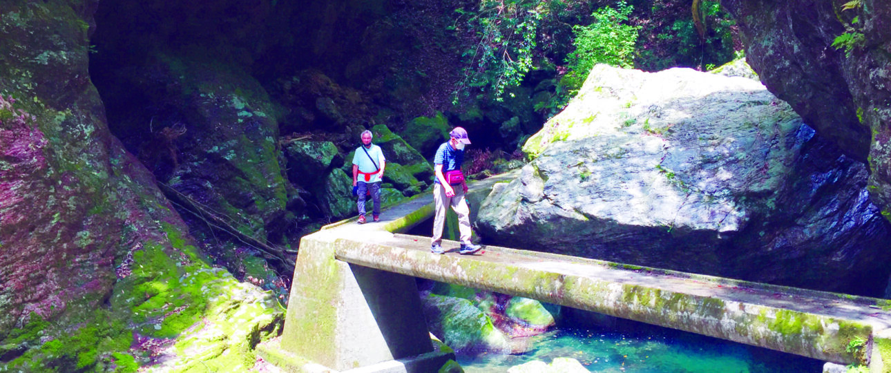 仁淀ブルーガイドウオーク(中津渓谷、ヤマトグサの森)~佐川町W(500選高知⑩)~さかわ観光協会(歴まちカード)~土佐犬スタジオ(込)~同ホテル宿泊